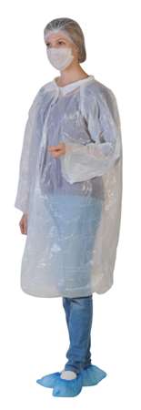 1 blouse polyéthylène à pression sans poche, 1 paire de sur chaussures bleue, 1 charlotte clip blanche et 1 masque papier 1 pli.